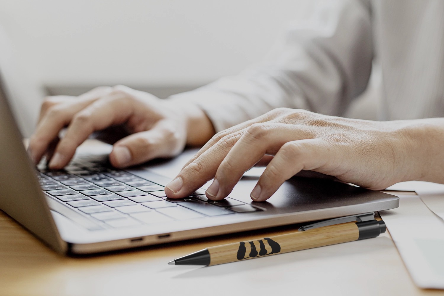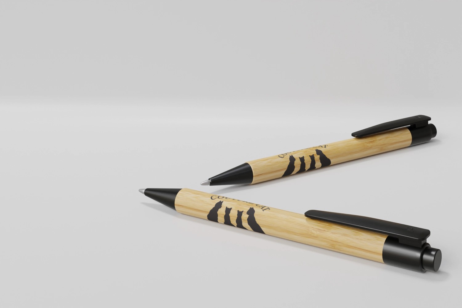 Ballpoint pen with click action mechanism, with a barrel made of bamboo, accented by a chrome clip and ABS plastic trims.